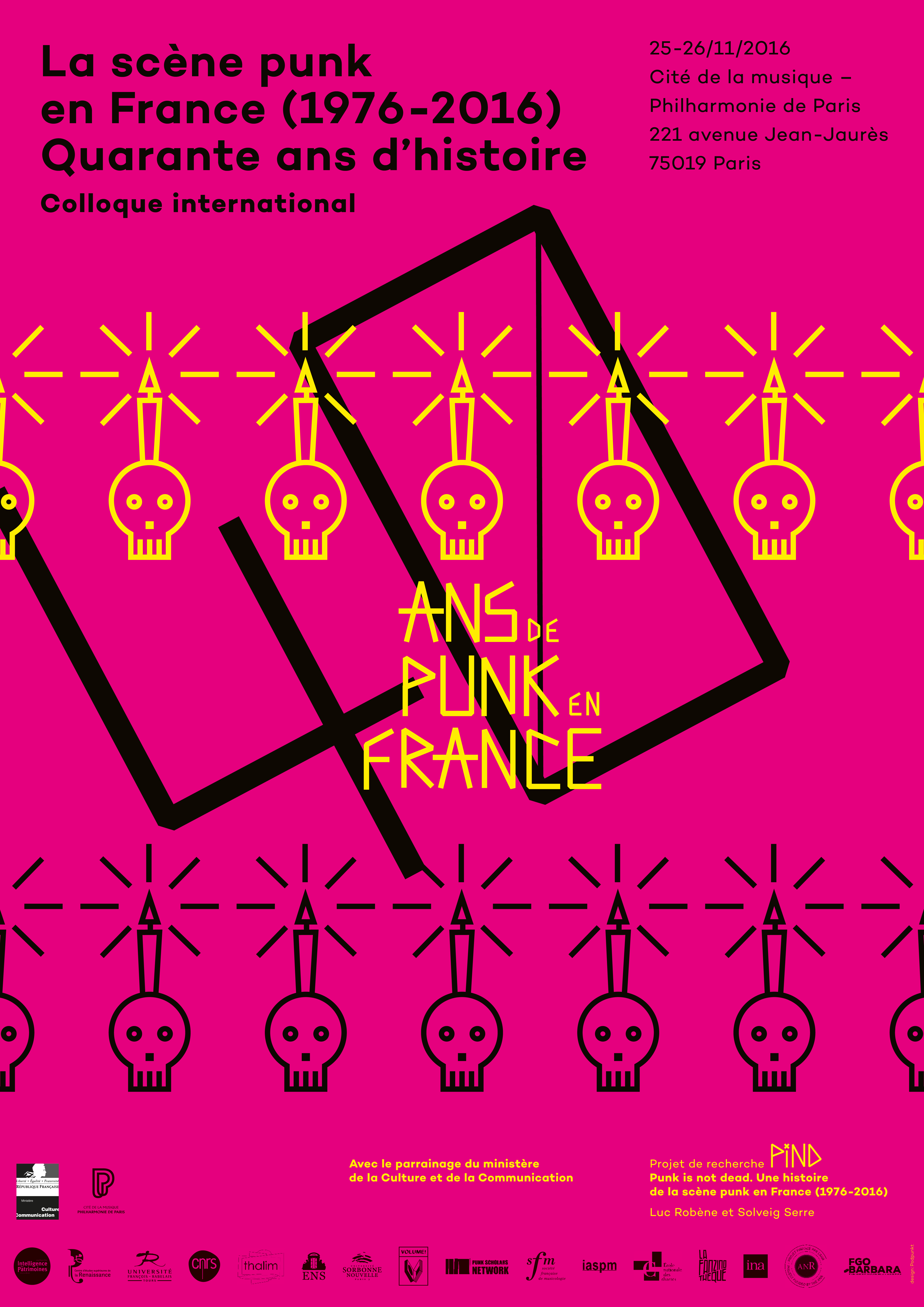 Dans la France de Giscard, l’explosion punk, marquée dès l’été 1976 par le festival de Mont-de-Marsan, prend à revers la morosité ambiante et clame son refus de l’ennui. Le mouvement, dont l’absence de perspective revendiquée s’incarne dans le slogan No Future, trouve un premier achèvement en 1978, lorsqu’une grande partie de la scène occidentale disparaît, débordée par le succès de nouveaux courants musicaux. Pour autant, la dynamique punk trouve un second souffle : elle se cristallise autour de sons musicaux plus durs, de textes plus engagés politiquement et de codes vestimentaires inédits, réinventant jusqu’à nos jours le son et l’être punk. L’étude de cette histoire en recomposition, de ses paradoxes, de ses forces et de ses fragilités constitue la problématique centrale de ce colloque. Il s’agira de revisiter la pertinence des périodisations et des ruptures qui définissent et organisent quarante ans de scène punk en France, de dépasser le spectre d’un phénomène réduit à l’évidence culturelle anglo-américaine et d’étudier comment s’élaborent et se négocient les frontières entre une culture hégémonique et une culture restreinte de la subversion.